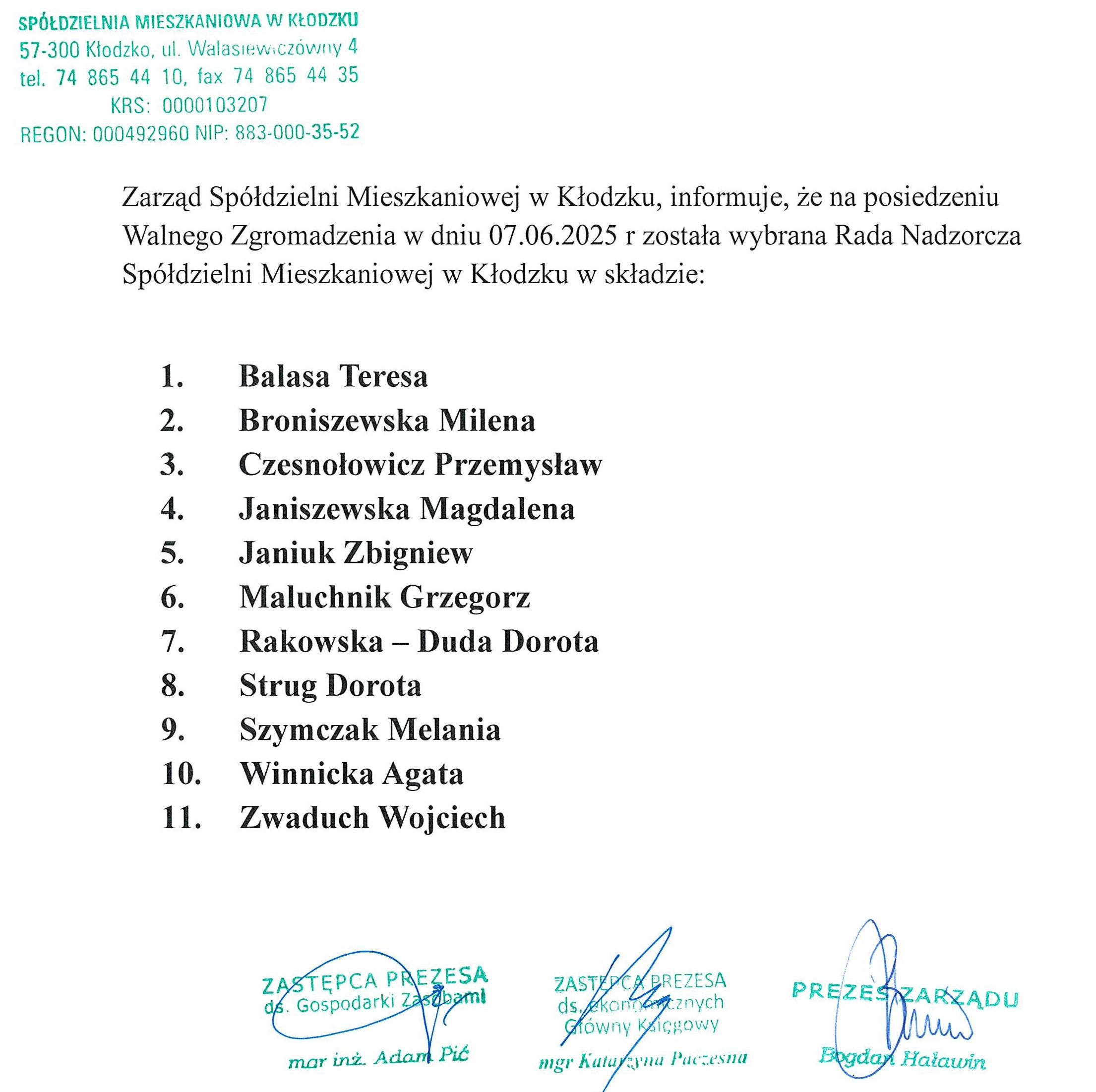 Lista członków Rady Nadzorczej wybrana na WZ 07.06.2025 r.