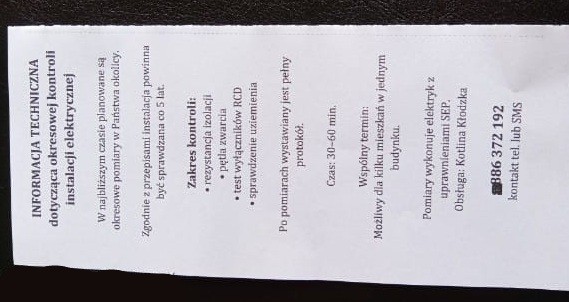 Spółdzielnia Mieszkaniowa w Kłodzku informuje, że w lokalach mieszkalnych zostały wykonane aktualne, obowiązkowe badania instalacji elektrycznej.